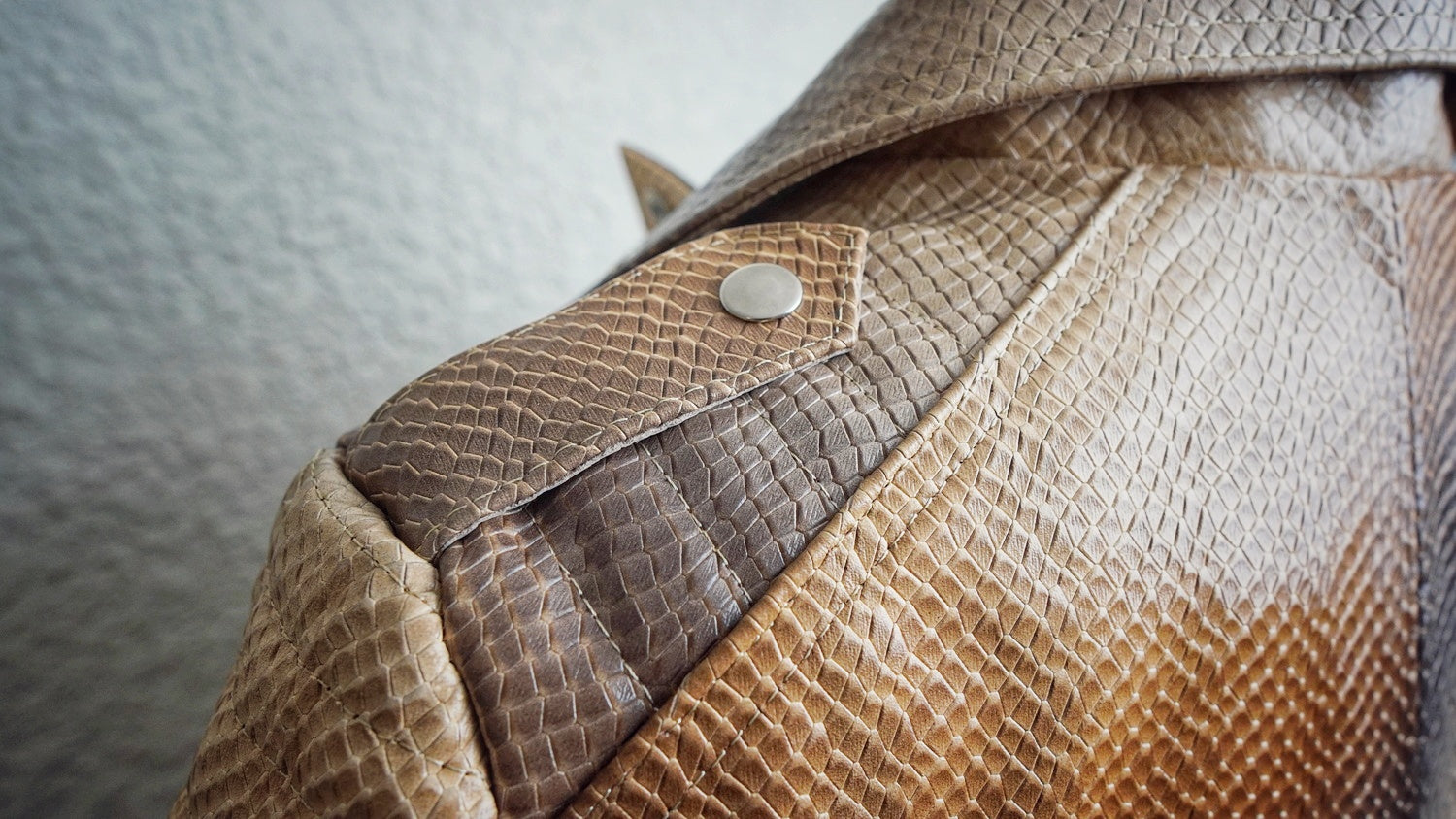 We search out and find embossed leather made to convincingly simulate exotic skins like crocodile and a variety of snakes