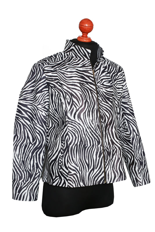 African Mirage Zebra Jacket – Exotic Black & White Stripes with Sunset Highlights