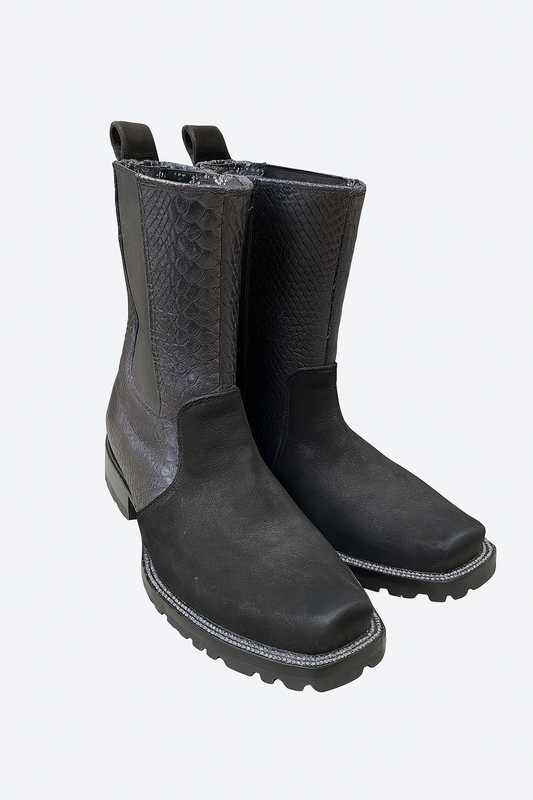 All-Black Exotic Leather Boots – Genuine Python & Premium Suede